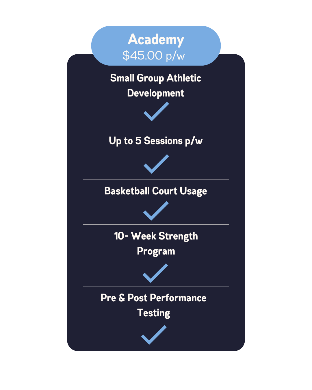 Academy Athletes can attend as many sessions as they like, with flexible timing to fit in with existing sport and family commitments.